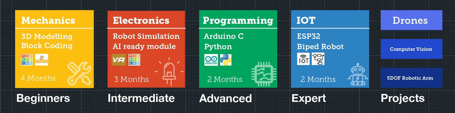 If you are not sure which one to pick, Just book a free trial and we will recommend you the most suitable one. all courses cost the same per month and include KITs as well.