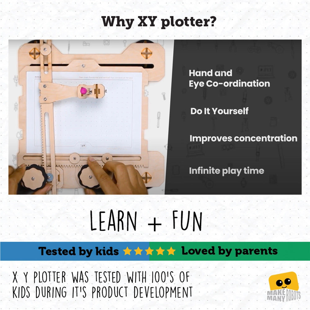 Introducing our hand-operated XY plotter - the perfect tool for young engineers and artists! This mechanical device allows kids to learn the basics of computer-aided design (CAD) and robotics through hands-on play.